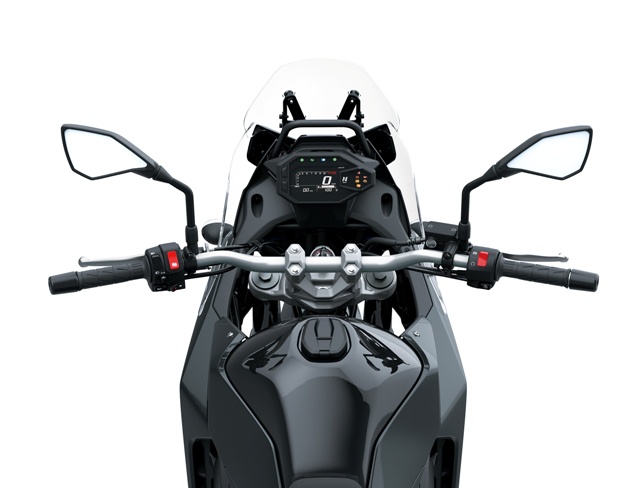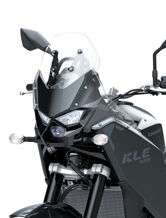 Kawasaki KLE 500 2026 – vsestranski adventure motor srednje moči. Združuje rally‑stil, udobje za potovanja in lahek nadzor na asfaltu ter lažjem terenu.